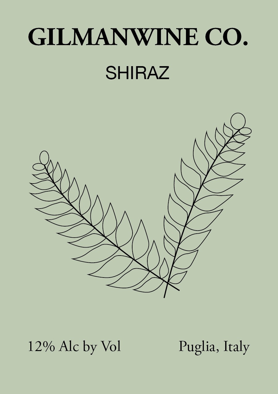 This is a minimalistic style label for GilmanWine Co. Shiraz.